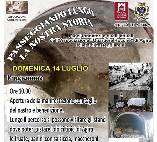 Il 14 luglio sarà dedicato L’anniversario di “Passeggiando lungo la nostra storia” dell’Associazione Quartiere Rocche, dove sarà possibile rivivere tradizioni, ascoltare musica folcloristica e degustare ricche pietanze della tradizione agirina. Prenota il